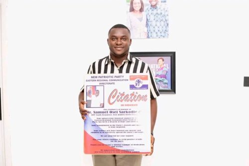 The Eastern Regional Communication Directorate of the New Patriotic Party (NPP) has honoured the New Juaben North Constituency Youth Organizer, Mr. Samuel Osei Sarkodie, for his exceptional dedication and financial support to the party.